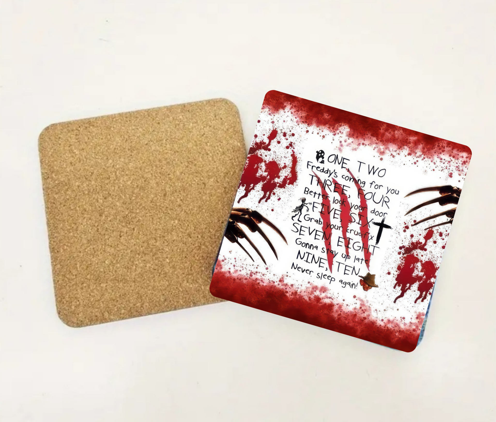 Kreiere deine eigene Kollektion an Untersetzer-Meisterwerken mit schaurig-schönen Motiven! Mit meinen creepy Horror Holz-Untersetzern samt Kork-Unterseite kann man seine Getränke stilvoll abstellen.