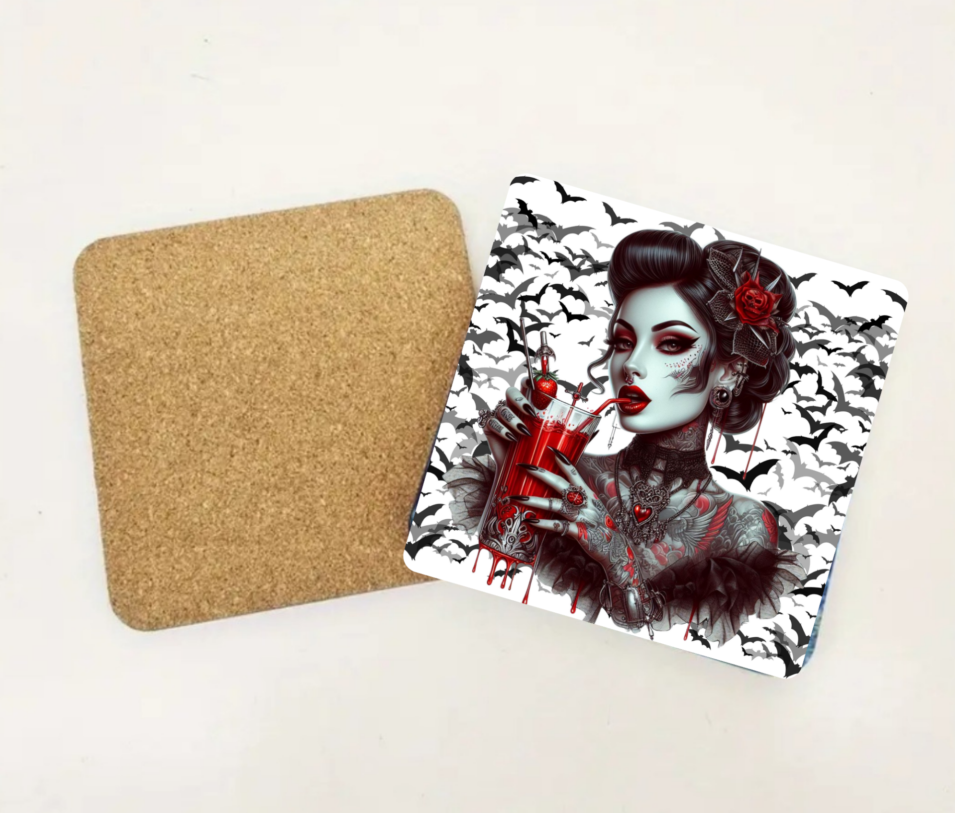 Kreiere deine eigene Kollektion an Untersetzer-Meisterwerken mit schaurig-schönen Motiven! Mit meinen creepy Horror Holz-Untersetzern samt Kork-Unterseite kann man seine Getränke stilvoll abstellen.