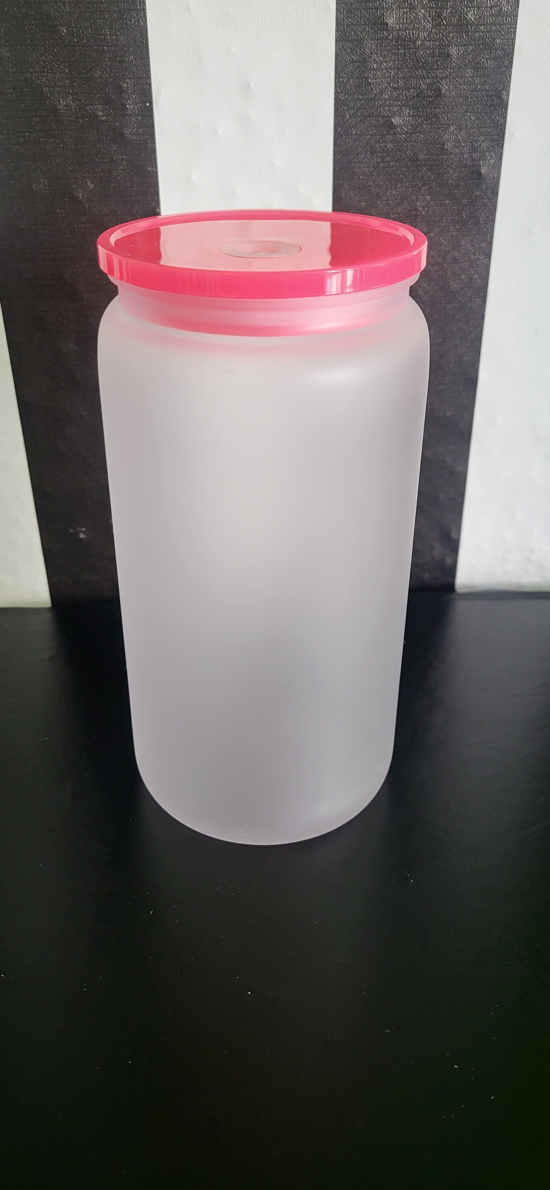 16oz Acryl Komplett Weiß matt, Pinker Deckel