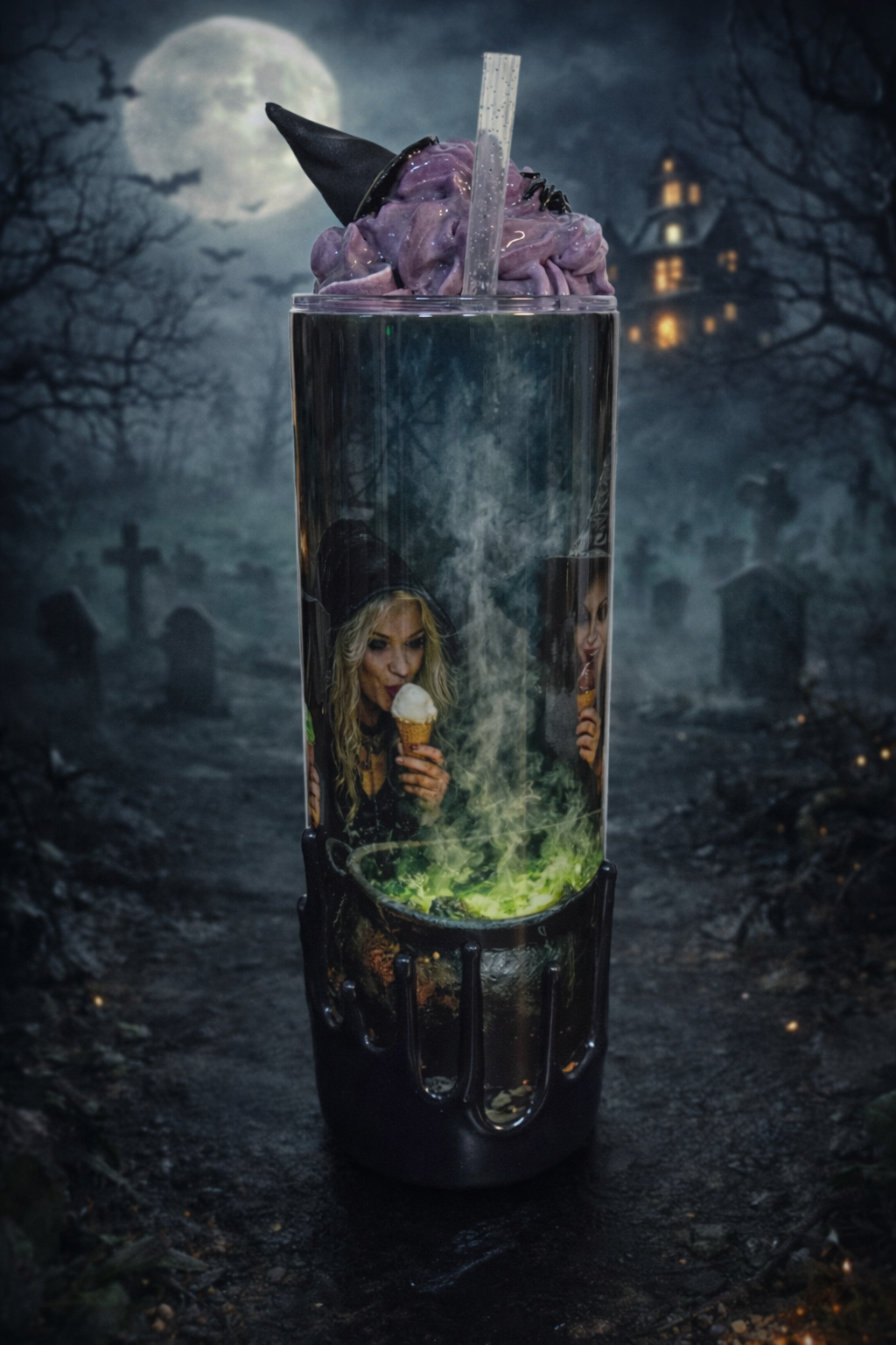 Dieser handveredelte 20oz Edelstahl-Tumbler (ca. 600 ml) bringt Hexenkessel-Vibes direkt in deinen Alltag.